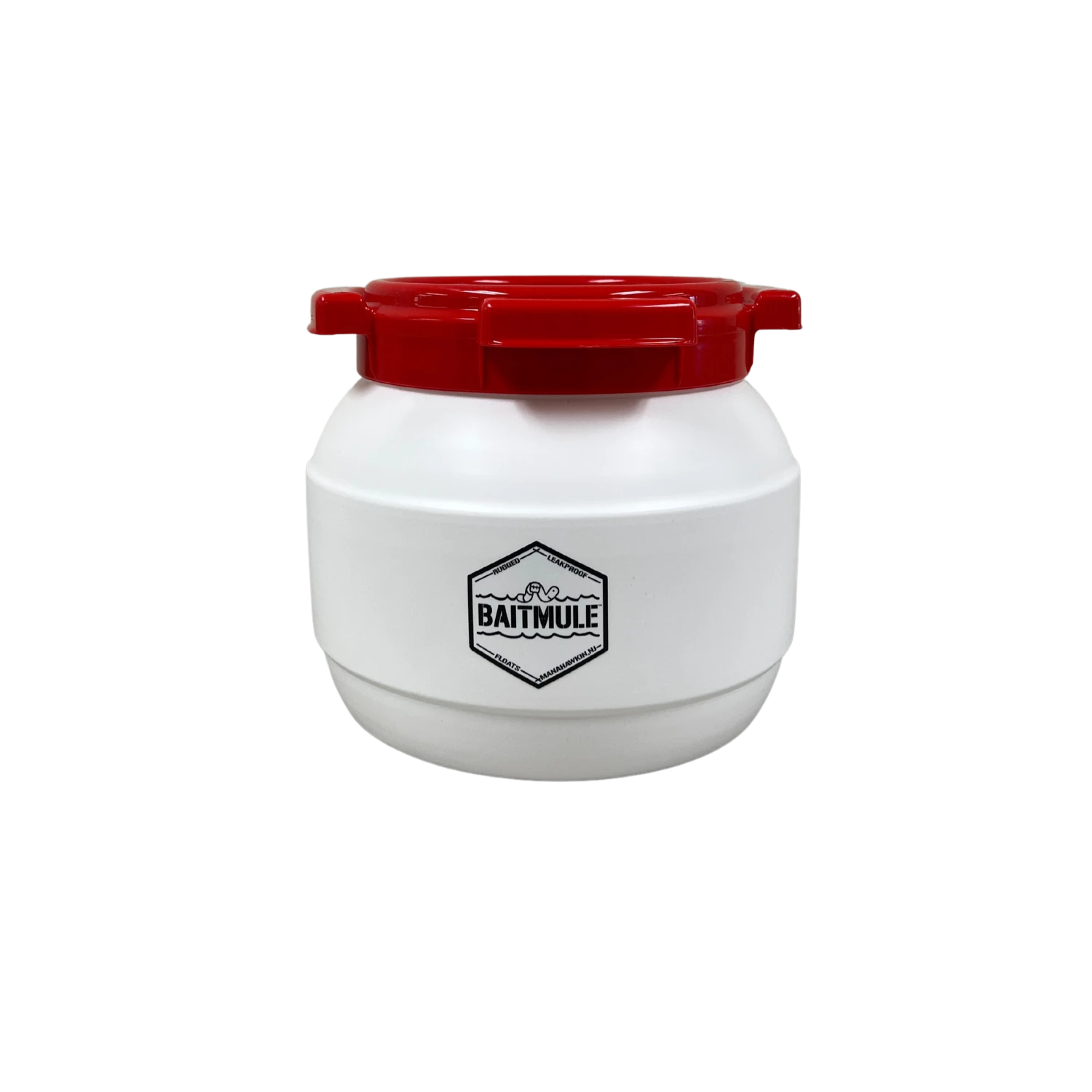 Introducing the Baitmule Storage Container. With Baitmule leaks won’t happen anymore. Upside down or on its side it keeps the liquid where it should be…inside! They are also great for minnows, eels, crabs or keeping your valuables dry. There are 2 sizes. The large white Baitmule holds approximately one gallon and is great for boat fisherman or surf fisherman who fishes from a beach buggy.. The small black Baitmule holds about one quart and is perfect for the surf or boat fisherman, it also fits perfectly inside a plug bag. Baitmules are truly leakproof, rugged, and they also float (large white will float over 8lbs and small black will float over 2 lbs). The large white model also has a place you can attach a lanyard for use on a kayak, or anywhere else it could fall overboard.