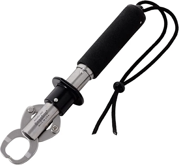 The BogaGrip is designed to promote “catch and release fishing,” as it will land, handle, and weigh fish quickly and simultaneously without injury to the fish. The BogaGrip also affords an easy opportunity to inspect and take pictures of the fish. Since it doesn’t wipe off the protective slime nor puncture the fish, and allows the fish to be quickly returned to the water, fish that are handled and released using the BogaGrip should be more likely to survive. The BogaGrip is particularly good for handling fish in cold weather, or hard-to-handle fish such as toothy fish, slimy fish, or fish that are likely to fin or cut a fisherman. It also keeps a fisherman’s hand at a safer distance from hooks.