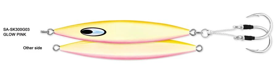 Daiwa Salitga SK Jigs features a unique Japanese Slow Jigging design. The unique fall and action entices predatory gamefish to react and attack. The aggressive SALTIGA SK JIG falls, spins and flutters to the desired depth. Once the SALTIGA SK JIG has reached the bottom or a targeted depth, simply wind the reel. The unique swimming action of the SK JIG allows the jig to kick and slap throughout the water column.Â