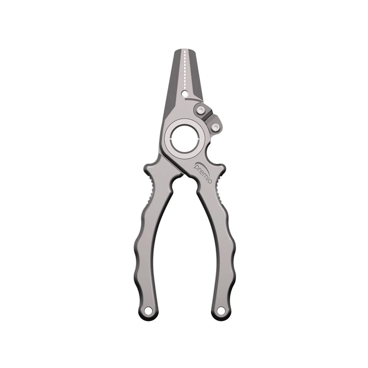 The absolute next level in fishing tools! We took a quantum leap forward and made a pair of extremely high-quality pliers that every angler would not only want but most importantly, be able to afford. Our premio level titanium pliers are just that, made of 100% machined titanium with a sleek matte finish and fitted with our exclusive Super Halo Hinge. These pliers also feature replaceable Cobalt-Titanium side cutters which are suitable for braided line, fluorocarbon, monofilament and even light wire. The entire line of premio pliers comes in very exclusive boxed packaging and they feature a 304 stainless-steel D ring, an elastic cord (non-coiled) lanyard and a belt-loop sheath made from the highest-grade leather. These pliers are extremely lightweight, so light than you will barely notice them on your hip for your lifetime of fishing excursions. All of the features above, backed with a full Lifetime Warranty makes these, “probably the best fishing pliers in the world.”