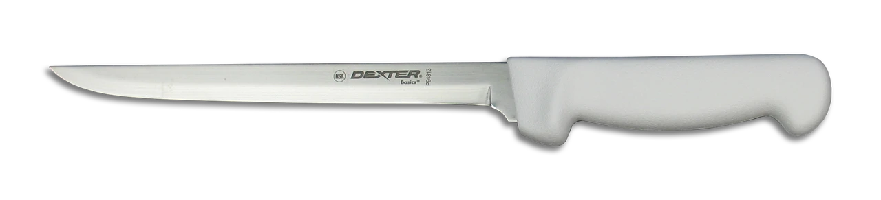 The Dexter Basics product line offers performance and value at an affordable price. The Basics blades are made of stain-free, high-carbon steel with a superior blade shape, as well as superior edge retention. These handles are available in either black or white, constructed with a nonslip polypropylene handle for your safety. Each knife is made with a hollow point edge allowing for easy maintenance and rapid re-sharpening. Cutting on a budget will never feel so good, with the Dexter Basics product line. NSF Certified.