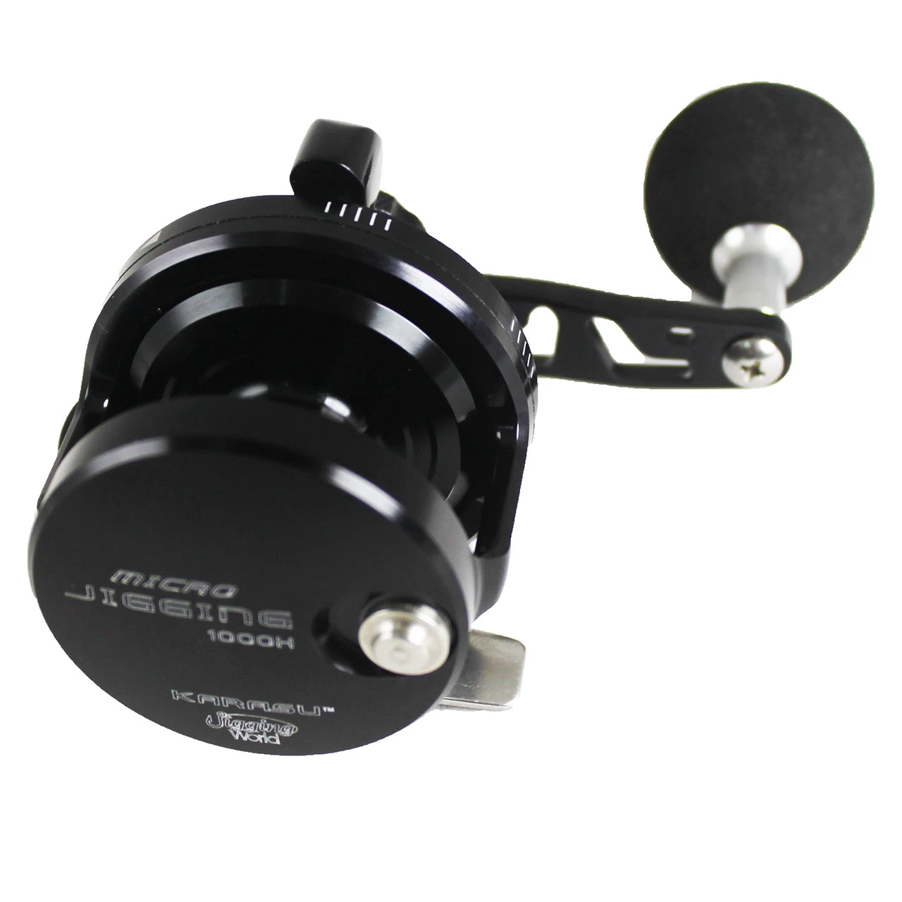Jigging World Micro Jigging reels are one of the smoothest lever drag reels out today. This small, compact reel is not to be mistaken. Made from cold-forged aluminum, these reels are made to last and are perfect for all inshore species including Blackfish, Striped Bass, Fluke, Black Sea Bass, Grouper, Cod, Amerback, & more! With one of the smoothest drags, these lever drag reels will perform flawlessly for you.