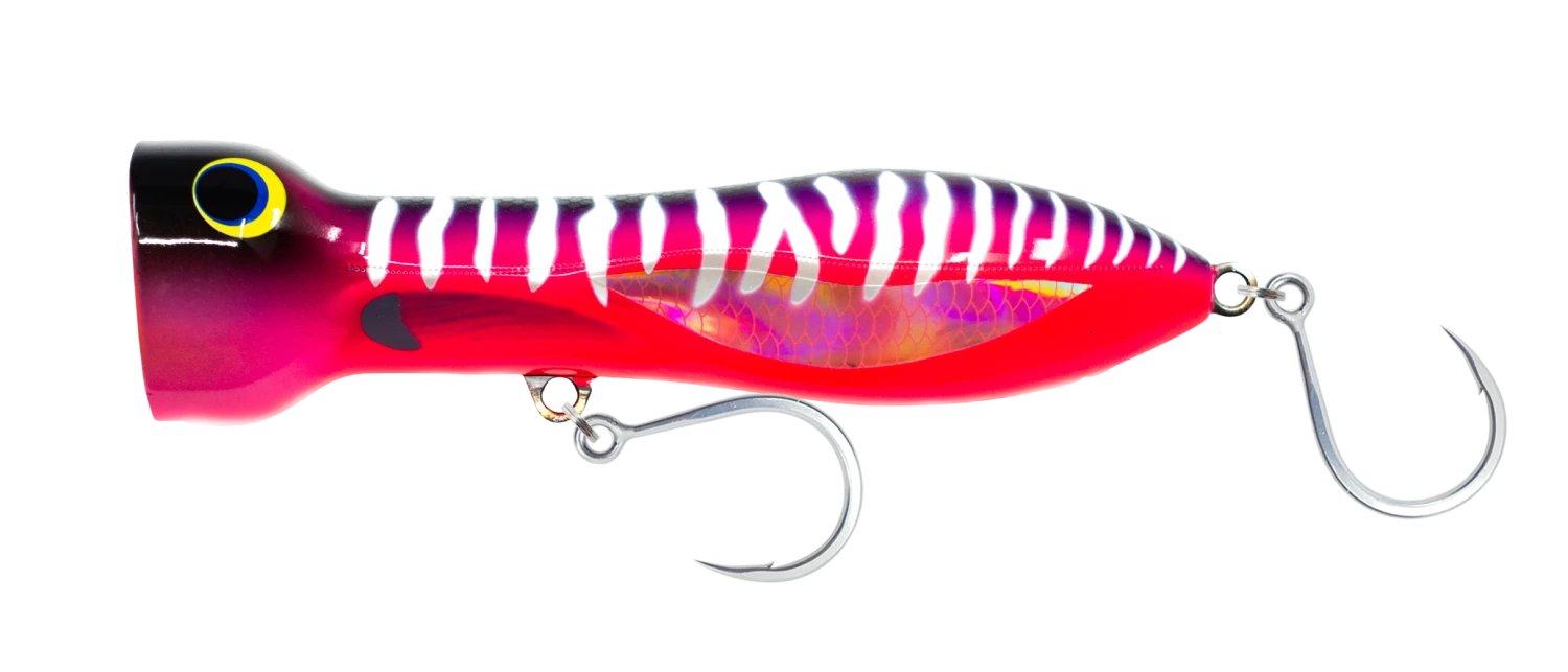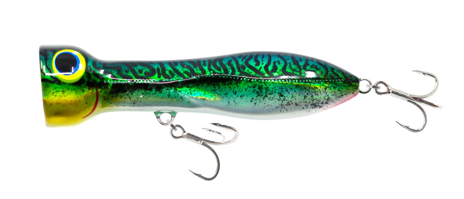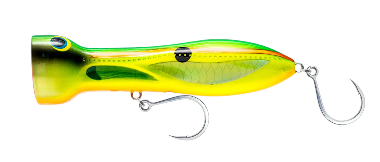 Nomad Chug Norris Poppers are super easy to pop, it hangs in the water and won’t “pull out” when popped. This popper is all about being easy to use, and it does not require much effort to get a very big pop due to the unique body shape and hydrodynamic design. It can also be worked with subtle small pops and twitched across the surface. Whatever application, or species, you will find the Chug Norris popper one of the easiest to use and most effective poppers.