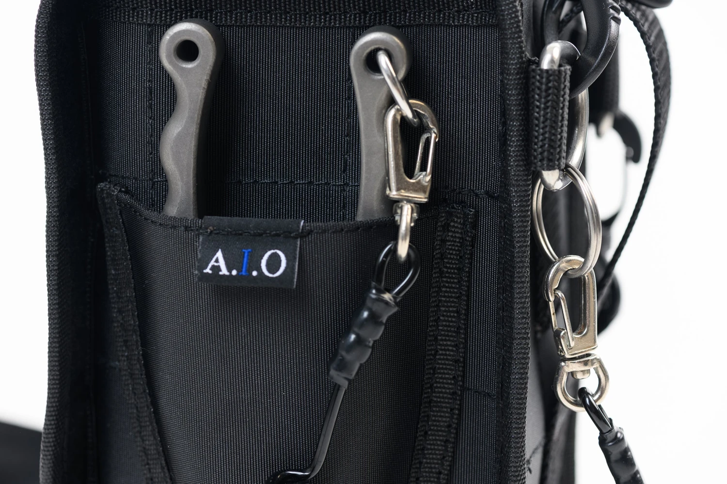 Designed with Versatility and Portability in mind, the A.I.O bag provides several separate compartments; a built in Plier Sheath, convenient access and storage for leader and accessories, bucktails and jigs as well as small, medium, large lures. It is engineered to be used and worn in many different ways to elevate the Surfcasters arsenal.