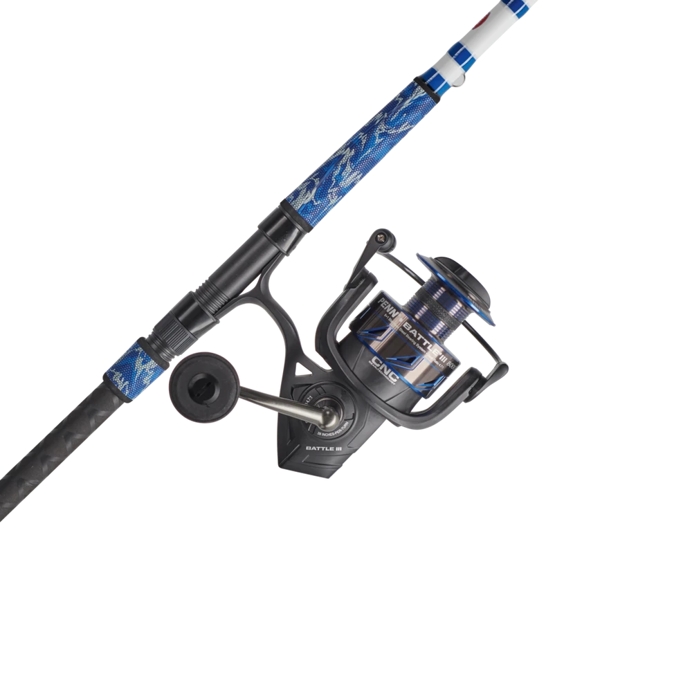 The PENN® Battle III LE combo is sure to turn heads at the dock! The Battle III reel features our proprietary CNC Gear Technology for ultimate durability, and the proven HT-100 carbon fiber drag system provides ultimate control during the fight. Paired with graphite composite blanks and a new twist lock reel seat design with integrated Winn grips, this combo will be comfortable in the hand during those long days on the water. PENN’s proprietary one-piece stainless steel Dura-Guides eliminate guide insert pop outs, one of the most common issues with rod guides.