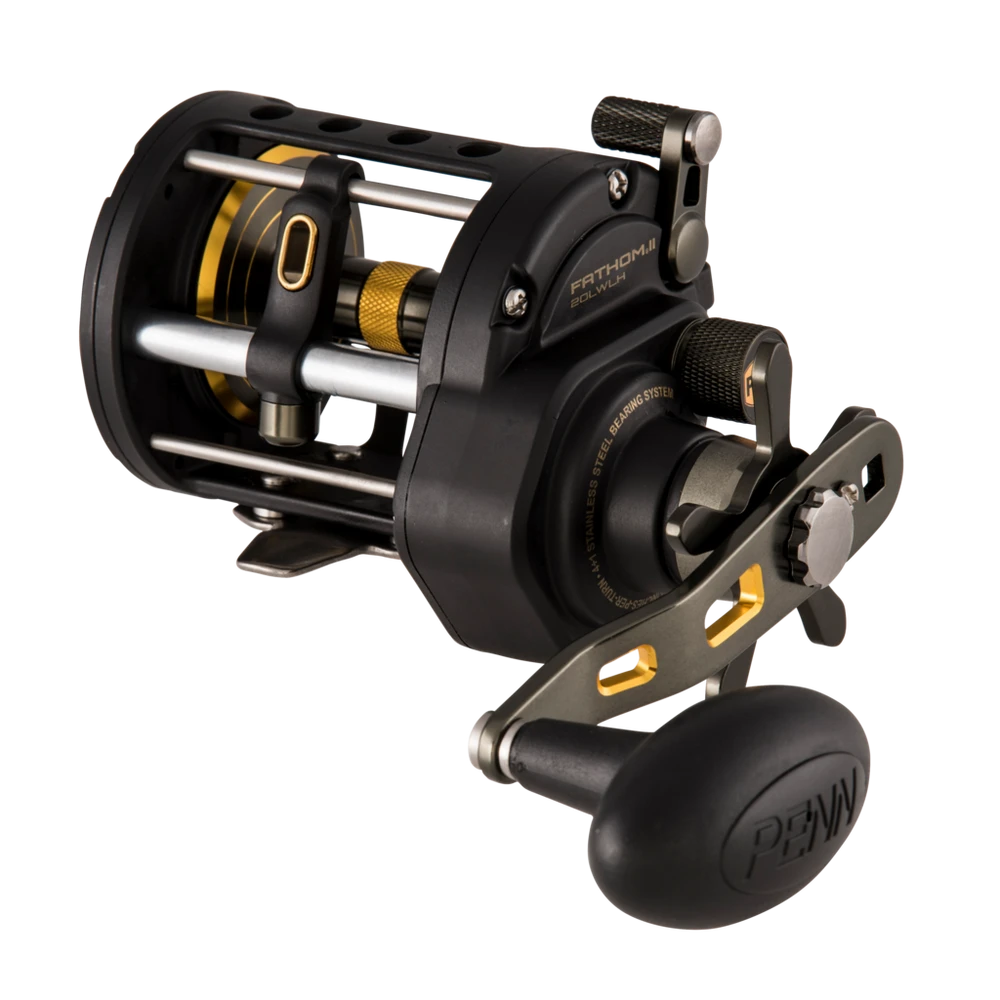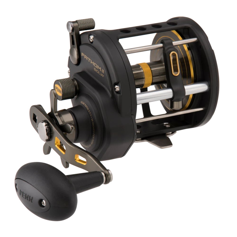 The PENN Fathom II Level Wind’s heavy duty construction and powerful gears make it a true workhorse and favorite of charter boat Captains. It is designed to handle extreme abuse day-in and day-out. Whether you are bottom-fishing or casting live bait, the Fathom II will stand up to the hardest fishing conditions. A Full Metal Body keeps precise gear alignment while the Fast Gear Access Sideplate allows for easy maintenance. The Fathom II also houses our powerful HT-100 drag system to stop any fish that bites. Available in standard, line counter and left hand models