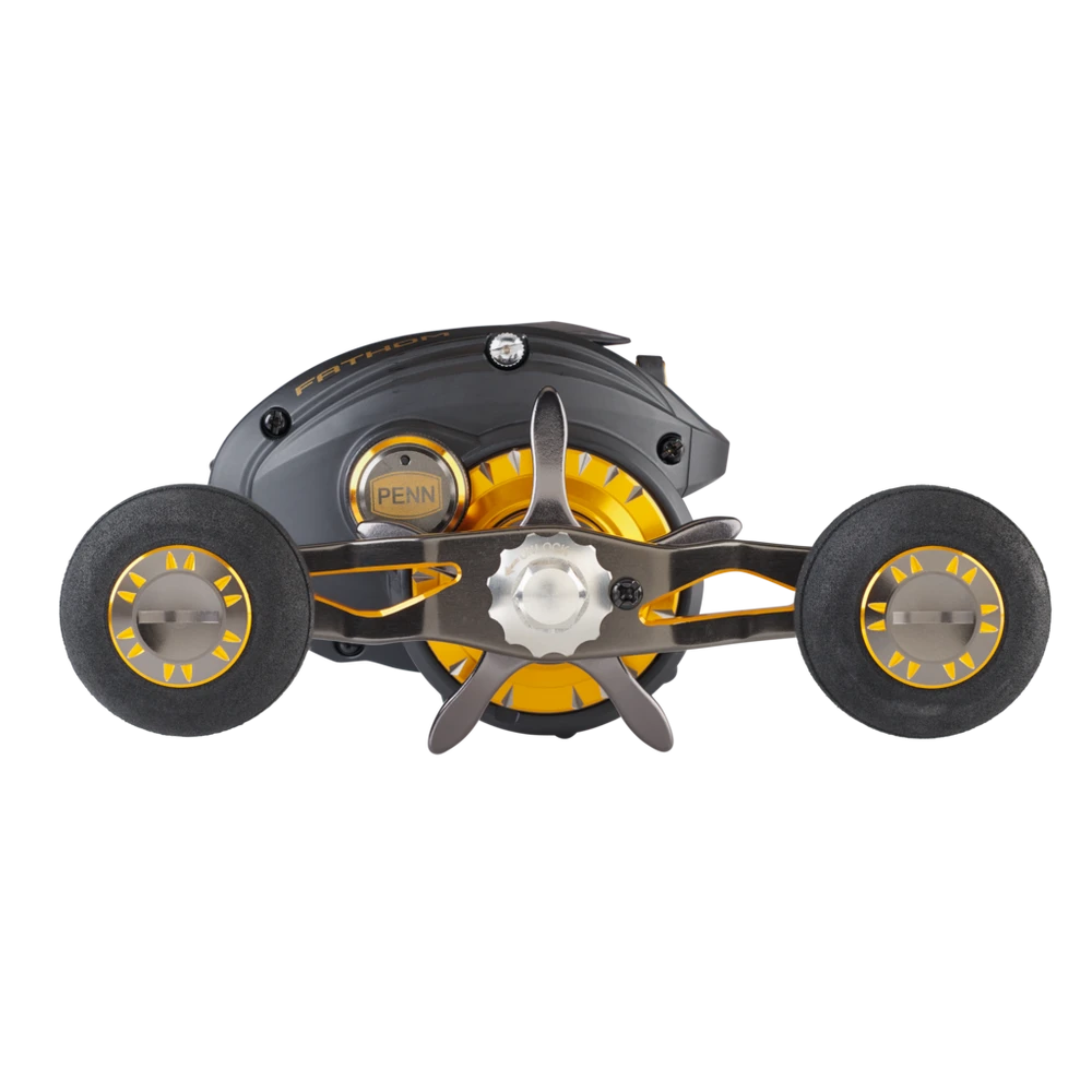 The PENN® Fathom low profile baitcast reels offer all the features you need to tackle the toughest saltwater fish. The Full Metal Body and Right Side plate, matched with a brass main gear and bearing supported pinion offer a drivetrain with unparalleled power, while the TiN Coated Level Wind System and Synchronized Drag and Level Wind system (*400 size only) give extra durability under high drags. Available in 200, 300 and 400 sizes with both standard and high speed gear ratios. Left hand models available in standard gear ratio only.