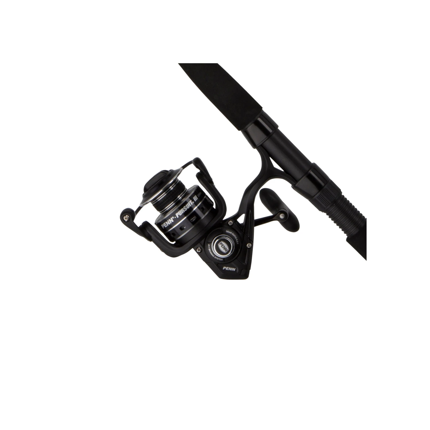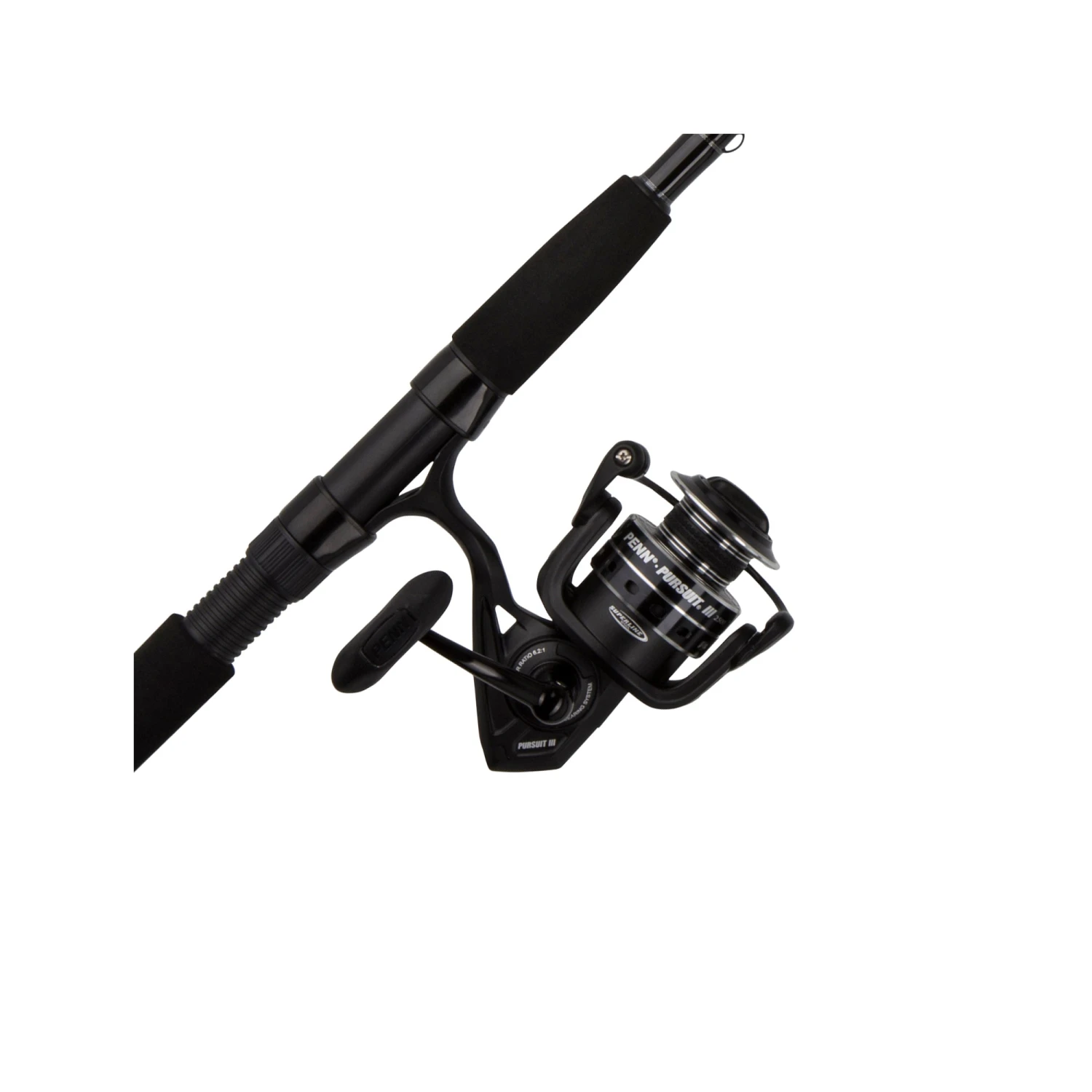 The PENN Pursuit III spinning combo is great for inshore, boat, and surf fishing. This combo combines the Pursuit III spinning reel and a graphite composite rod for an affordable and durable fish-taming set-up. The reel features an ultra lightweight, corrosion-resistant graphite body, and houses our powerful HT-100 drag system, making the Pursuit III a great value for the money for saltwater anglers.Â