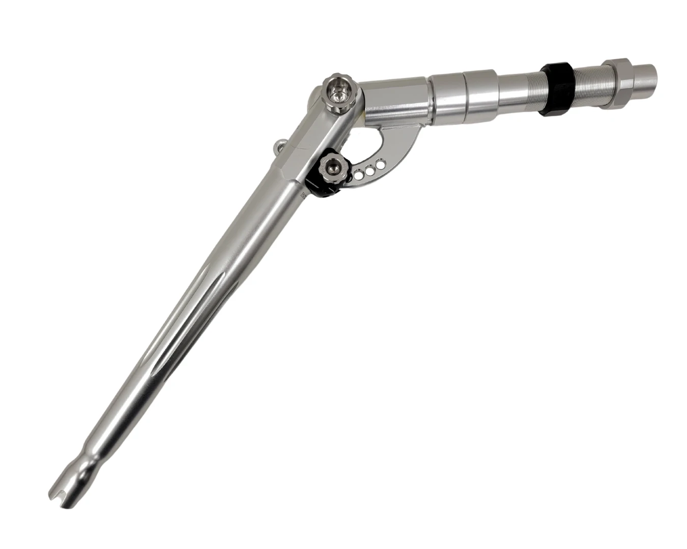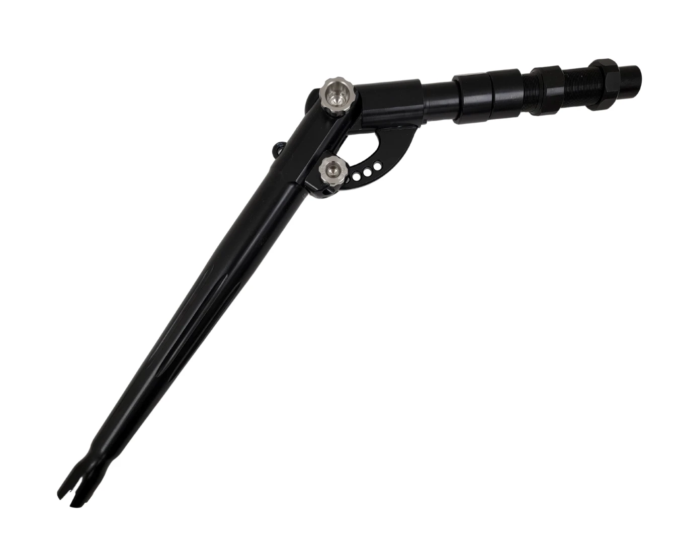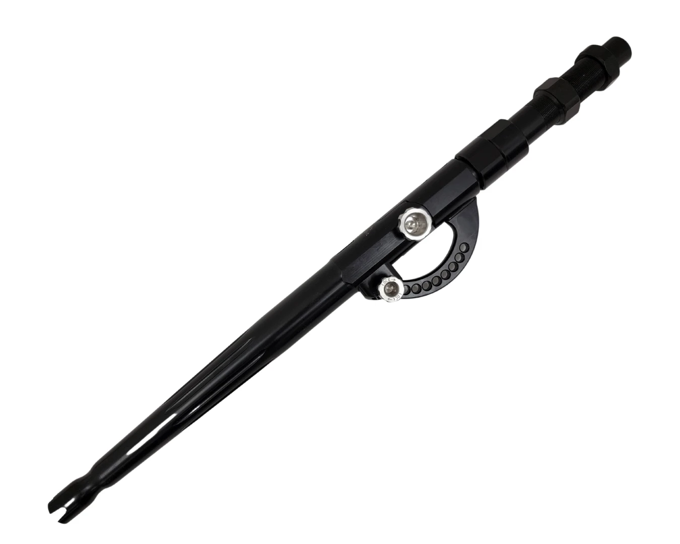 Winthrop Tackle Terminator T-10X Adjusta-Butts is machined from aircraft-grade aluminum with a hardened stainless steel positioning mechanism. Rather than being limited to only 2 positions, the Terminator T-10X gives you the flexibility to position your rod from straight to bent and 8 other positions in between. With a total of 10 adjustment settings, your comfort and preference on how you want to fight your big game fish is now possible. incorporates two butt handles in one! The Delrin Collet Nut is made to stay tight to the hood at all times.
