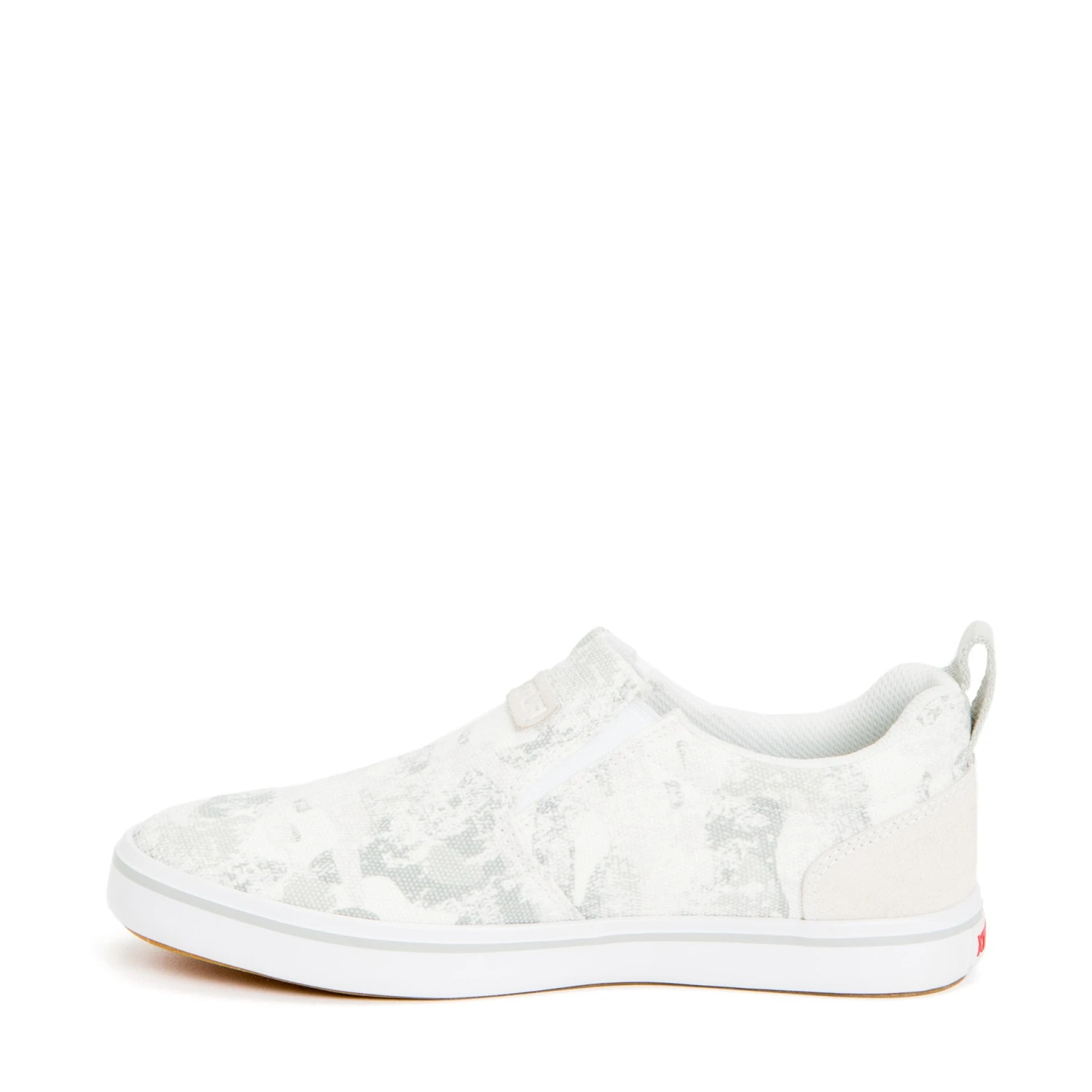 Xtratuf Women’s Canvas Sharkbyte Deck Shoes White Camo –Â Ideal for fishing, boating, or on land excursions, the Sharkbyte is a low-cut, slip-on style for men and women. Breathable canvas uppers with hints of suede for style sit on top of a non-marking, slip-resistant Chevron outsole for performance and style on and off the water. Breathable mesh lining keeps feet cool on hot summer days. This Women’s Sharkbyte Deck Shoe features a subtle white and gray camoflage pattern that is ready to go from the deck, to the dock and beyond.